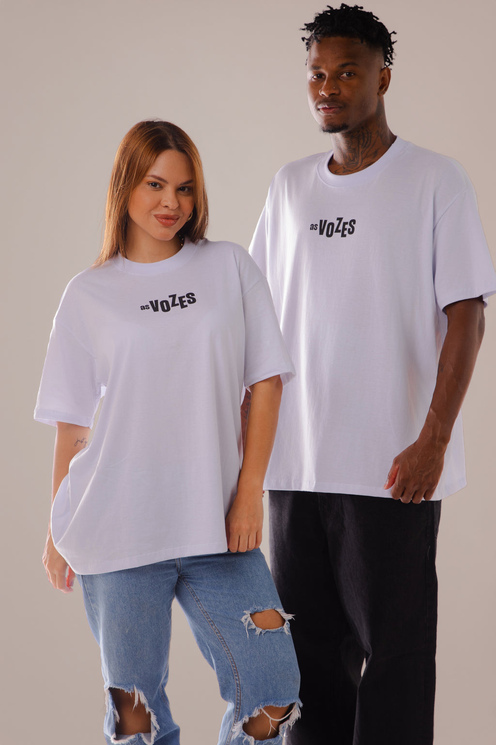 A Camiseta Turnê As Vozes — Branca carrega o clima de estrada, palco e encontro que define o projeto.