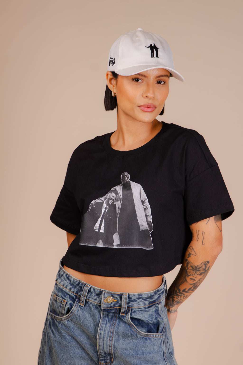 O Cropped Ferrugem e Péricles é a peça perfeita pra quem carrega o peso do pagode no estilo. Com estampa marcante em preto e branco que homenageia dois ícones, ele traz atitude e identidade em um visual moderno e versátil.